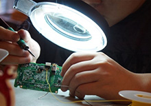 Инженер сервис центра проводит восстановление: заменяет поврежденную часть исправной оригинальной частью